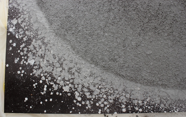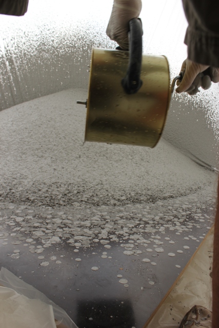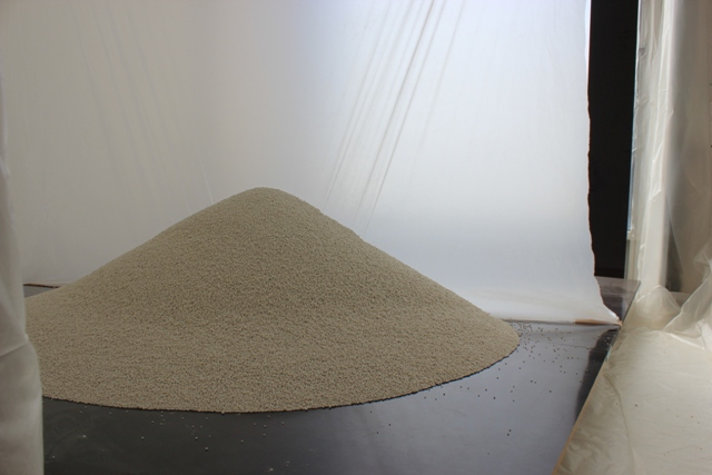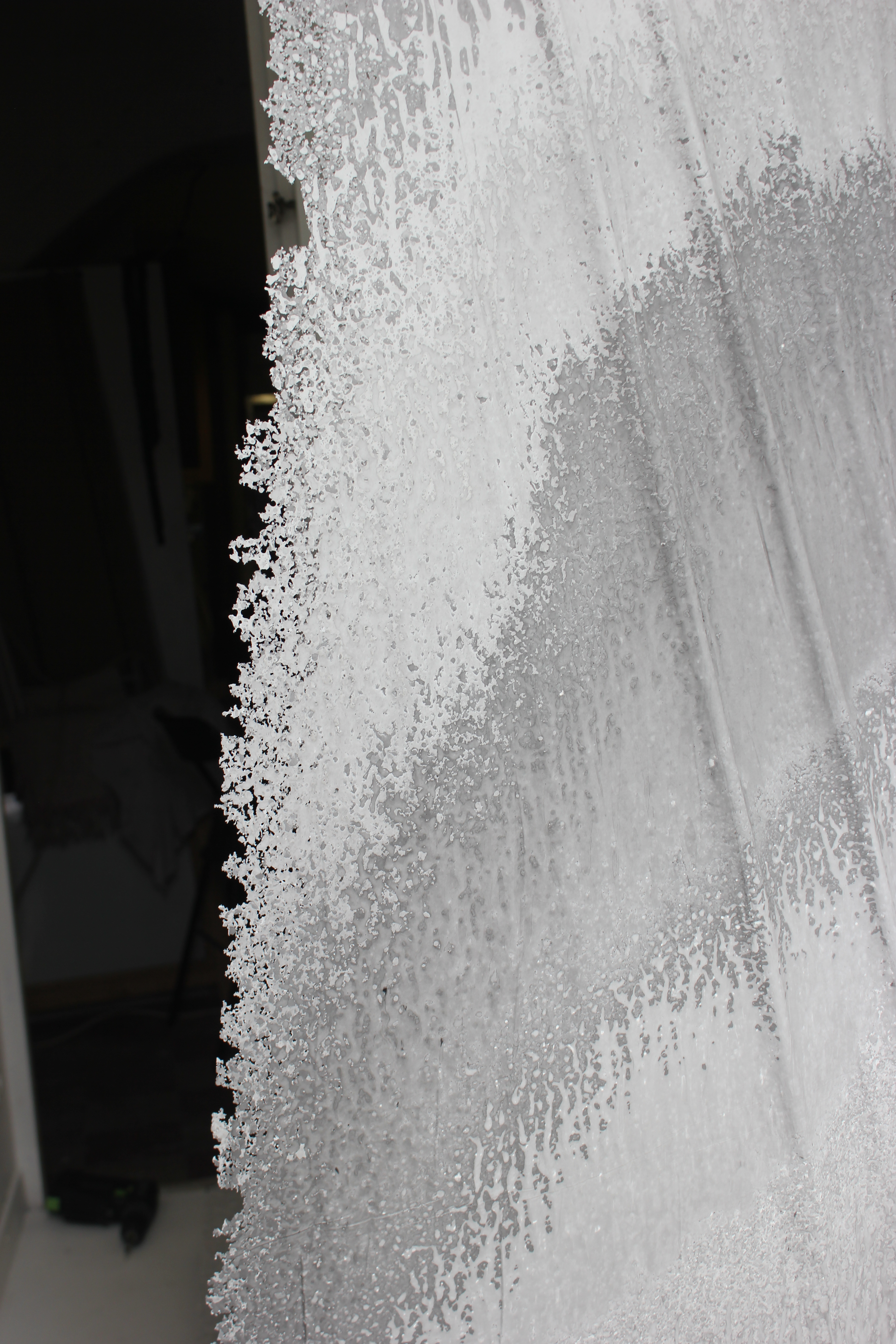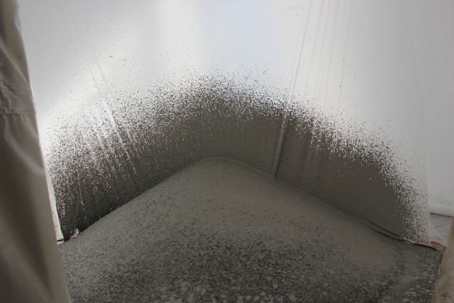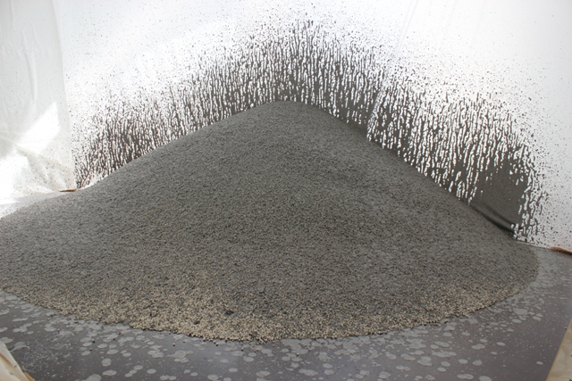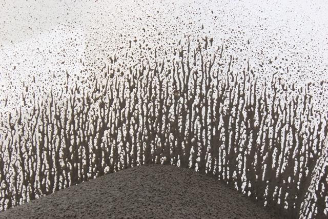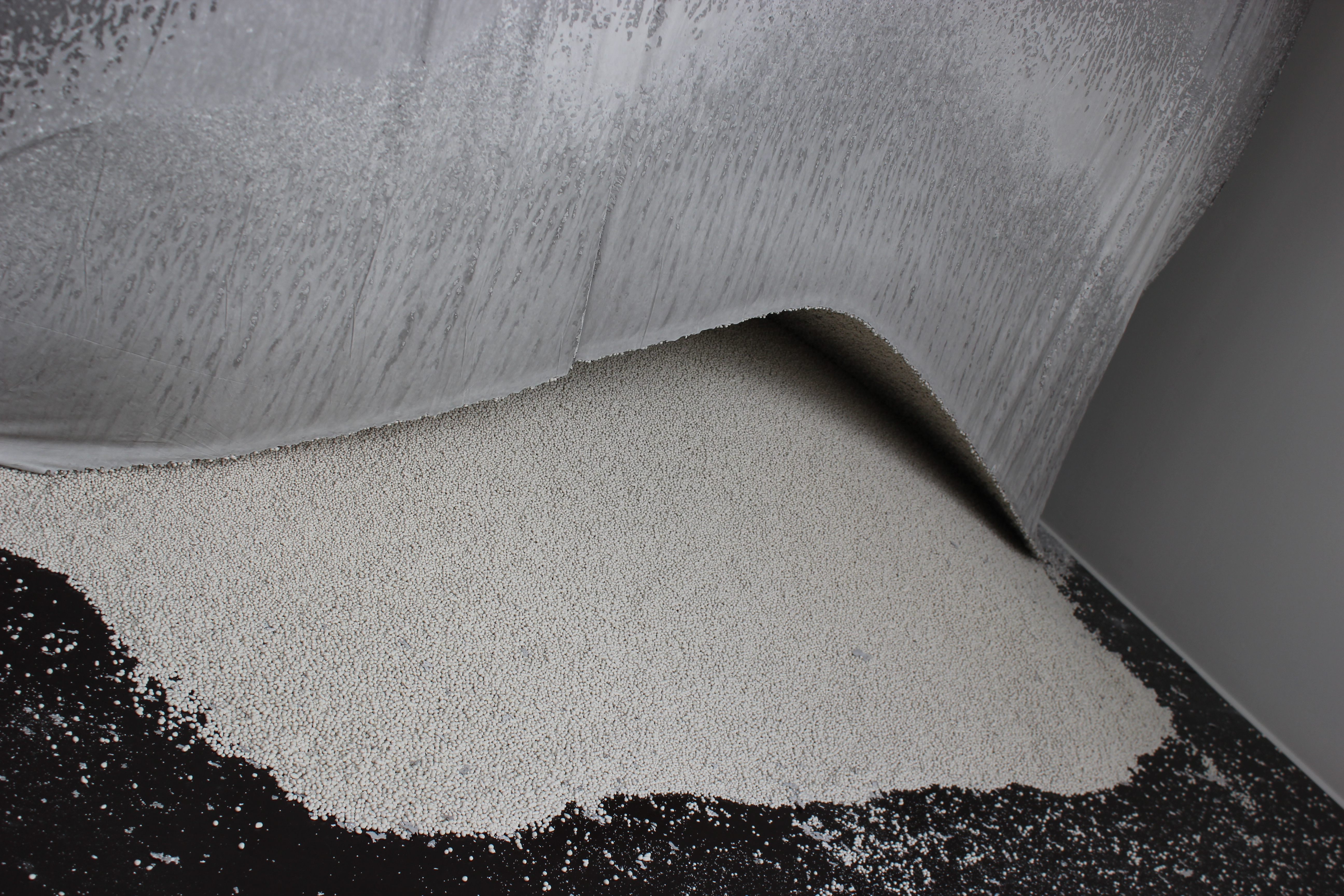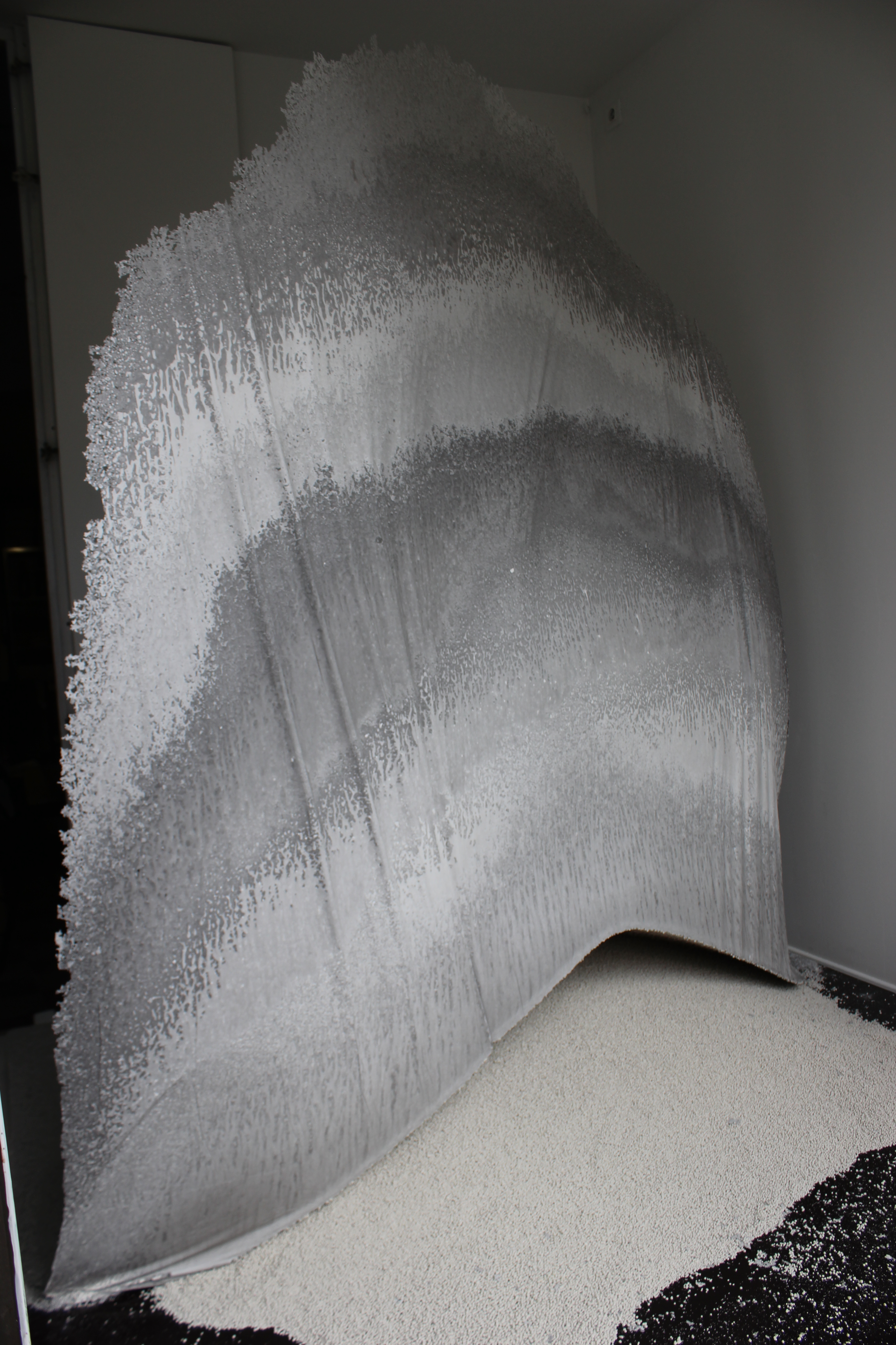 Conçue par Arnaud Vasseux pour ce lieu spécifique, la vitrine, Mélanges est une œuvre issue d’une réflexion sensible autour de l’espace, de la vision, de la mise en œuvre des matériaux dans la recherche de leurs potentialités comme de leurs limites, concrétisée en une expérience plastique, geste d’une grande audace, aux nombreux échos et réminiscences, dans la force en tension d’une fragilité au risque de la destruction.