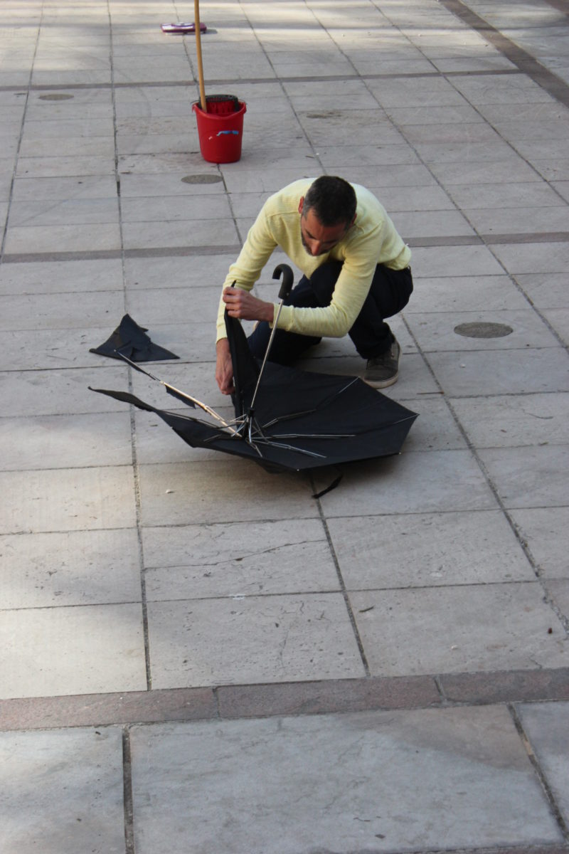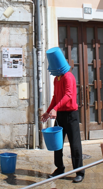 Quand Bruno Mercet fait une performance, nous voyons les objets autrement. Ses gestes témoignent de cette volonté graphique et ludique de convoquer l’absurde et le burlesque à travers la dimension poétique d’habiter l’espace. » Norbert Muce.