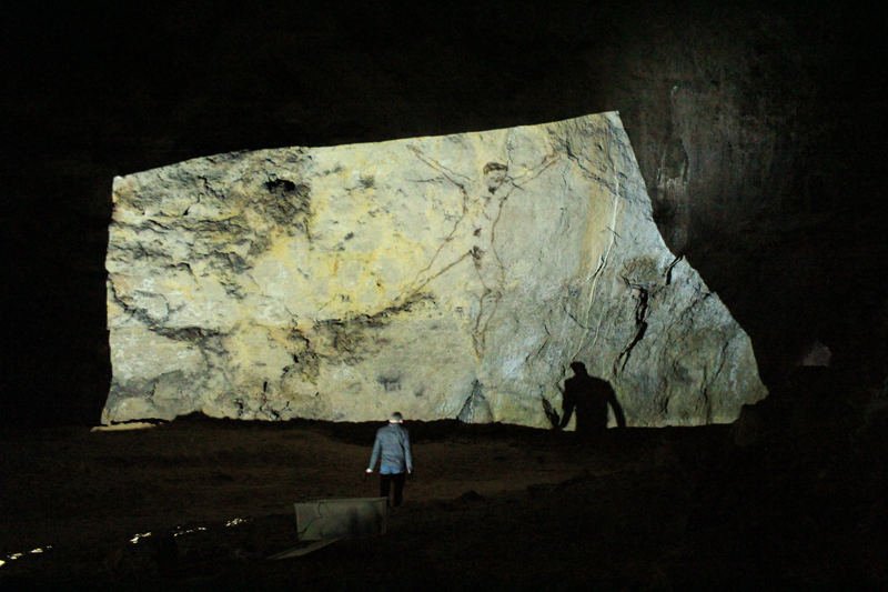 Dans le cadre de l’opération ultraterrestre, La V.R.A.C. a présenté dans une grotte proche de Millau Voyage autour de mon crâne, une oeuvre du FRAC Midi Pyrénées (créée pour la grotte du Mas d’AZIL en 2011). L’exposition, réinstallée par Delphine Gigoux-Martin en fonction du lieu est un ensemble de 4 projections géantes de dessins animés, projetées sur les parois de la grotte.