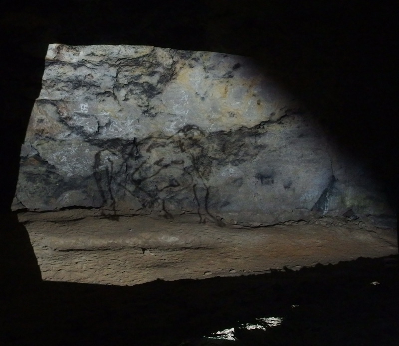 « Fermer les yeux grands ouverts, entrer dans la grotte. S’allument les constellations, s’installent les images remontées des confins, se puisent elles mêmes dans la vaste bibliothèque de l’histoire, de mon histoire, de notre histoire. Aujourd’hui, le froid ensoleillé laisse place à la tiède, à l’obscure humidité, au silence mat de la roche percuté par les claquements glacés des gouttes, impacts sur nos crânes dans lesquels résonne encore la lumière du jour, projetée sur nos parois internes en formes mouvantes, taches et traces dansantes épousant nos contours, nos circonvolutions. Animales apparitions fugaces, remontées soudaines d’un souvenir devenu rêve. Le blaireau fouissant retourne aux profondeurs, aux labyrinthes, aux galeries, à la terre sableuse, taquiné, poursuivi, harcelé par l’aérien, têtu, narquois oiseau sautillant, voletant, obscur tracé virevoltant. Un charbonneux souvenir de feu, de soleil, perçant la lumière perçant la noirceur souterraine. Plus loin, après le boyau, dans l’éblouissante ténèbre, jailli de l’imagination débordante des parois longuement calcifiées, de la faille glaireuse, de la noire et luisante anfractuosité, de la fissure humide et boursouflée, s’éveille le danseur, le vivant, émergé de toutes profondeurs. Resurgie des fossilisations, son énergie dansante explore les chemins animaux vers l’érection, la surrection. Pieds, sauts, jambes, sexe, extensions, détente, être crapaud, têtard, cellule, dos roulé, plié, lové. Soudain fauve bondis- sant, proie aux aguets. Joie expansive, séduisante parade, mimétique épousaille. Le trait mouvant hésite et griffe, dessine et grave en nous la silhouette qui s’anime : le danseur, le vivant. L’Ariane qui le trace, le graphe, le dévide, nous guide dans les diverticules obscurs de notre animale humaine condition. Delphine Gigoux-Martin rameute, cruelle et caressante, nos vieilles origines affamées, multiples anciens communs esprits, enfoncés, enfouis, pétrifiés, palpitants, fascinés, fascinants, de proie et chasseur tour à tour. Elle invoque, elle envoûte en chaman implacable l’image électrique en enchantement du présent. Stéphane Got, 01/03/2013