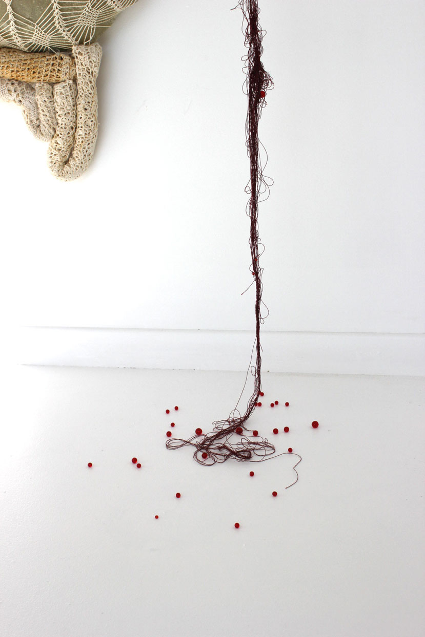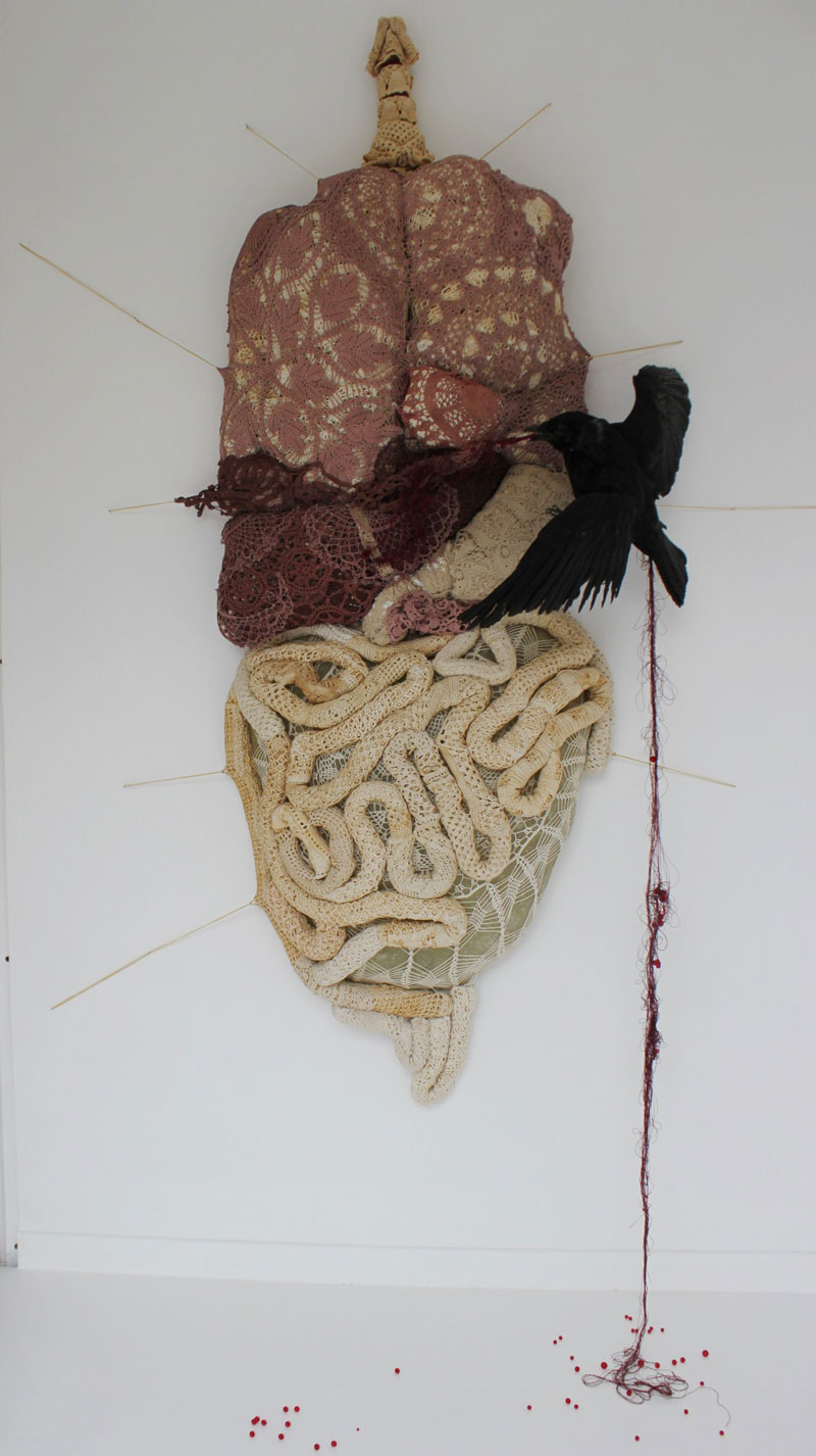 Dès lors, il apparaîtrait que cette volonté farouche de création constituerait l’éternel pendant de la dévastation. C’est une bien curieuse et étrange tâche que de vouloir fabriquer avec des images de mort quelque chose qui ne nie pas la réalité mais la reconstruit tout autrement, comme si l’éternel du Monde se résumait en cette oscillation incessante entre création et destruction. S’opère alors quelque chose de l’ordre du re-tissage perpétuel de la dé-liaison, un re-maillage de ce qui, d’une façon ou d’une autre se serait distendu ou aurait été démantelé ».