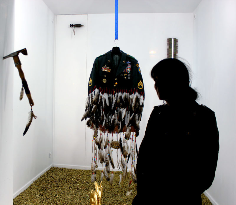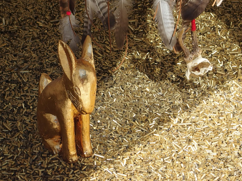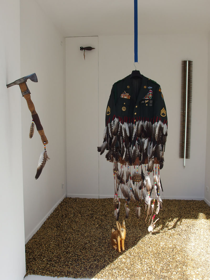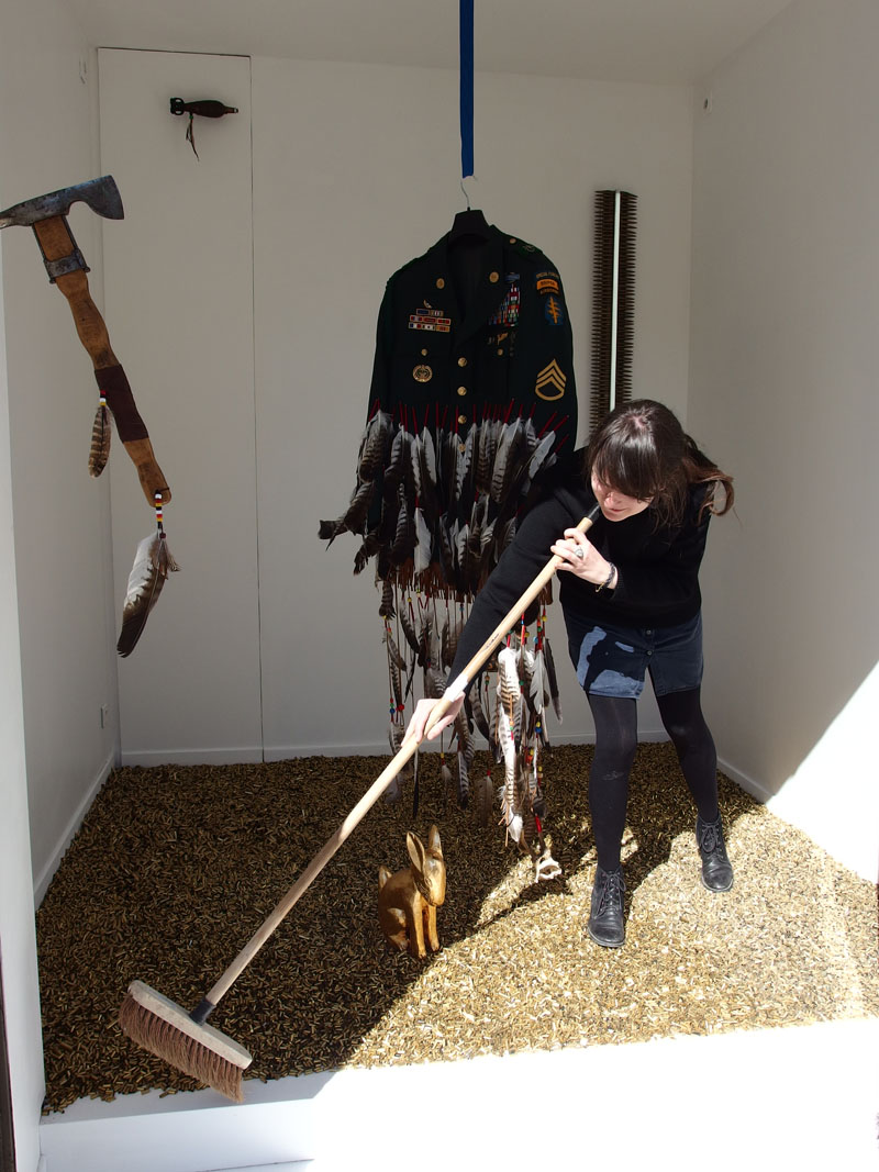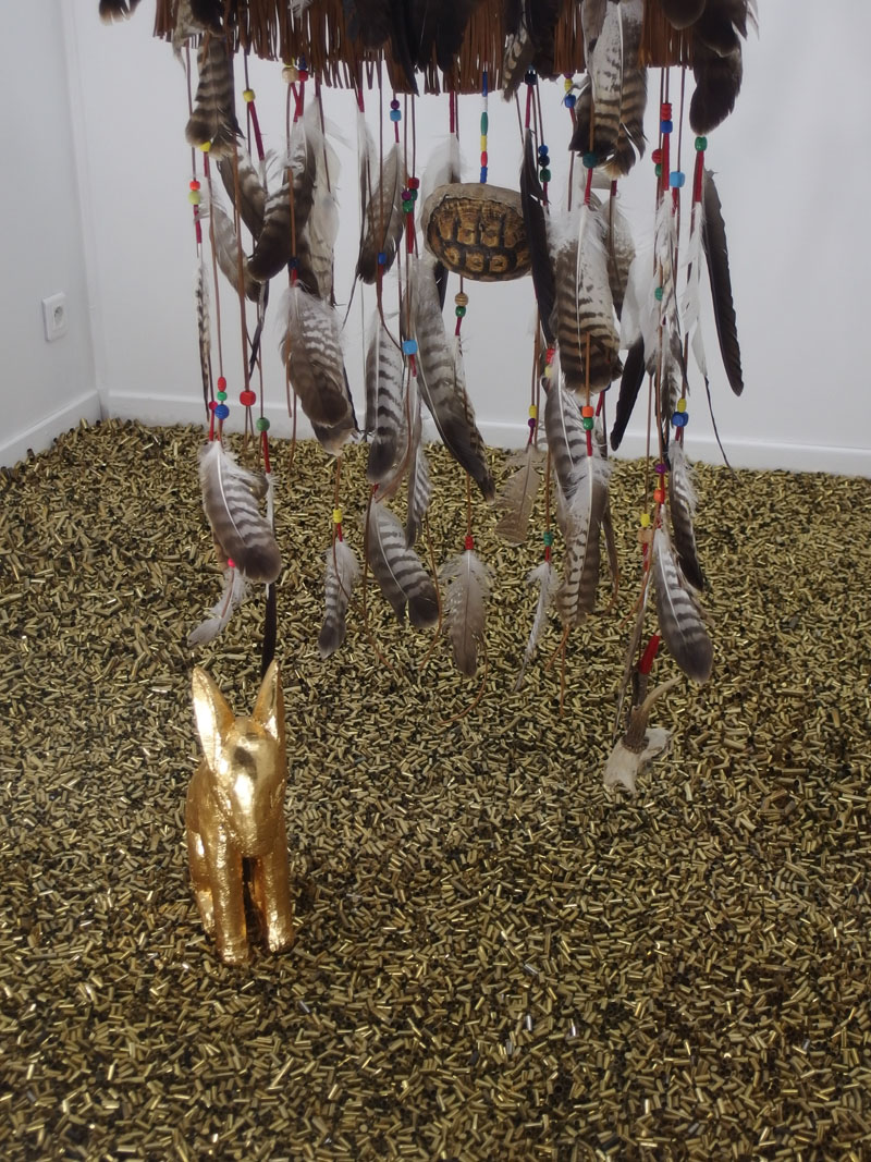 Léa Le Bricomte s’interroge sur ce que l’on appelle parfois la « nature » humaine. Se demande ce qui pourrait constituer une structure, voire un sens, une signification à ce que nous sommes, constate un état de fait brutal, que l’actualité documente abondamment, et postule malicieusement l’art comme pouvoir d’inflexion positif, constructif. Entre spiritualité et violence, entre art et créativité guerrière, en regard des équilibres des « sociétés» animales, et des sagesses premières, Léa Le Bricomte conçoit et place oeuvres, installations, et performances comme une chamans organise ses interventions réparatrices. Dosant puis assemblant ses ingrédients – récoltés lors de ses voyages, recherches, et rencontres – grâce au liant d’un humour désacralisant, elle fait oeuvres avec une inventivité formelle réjouissante.