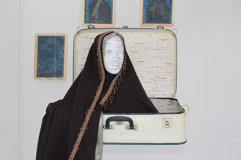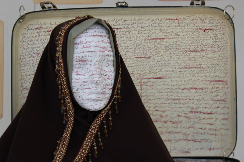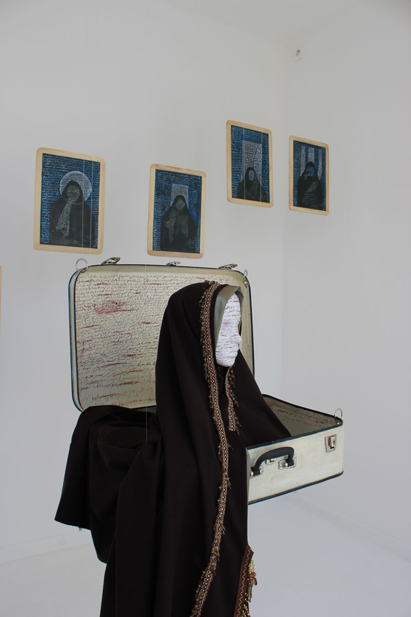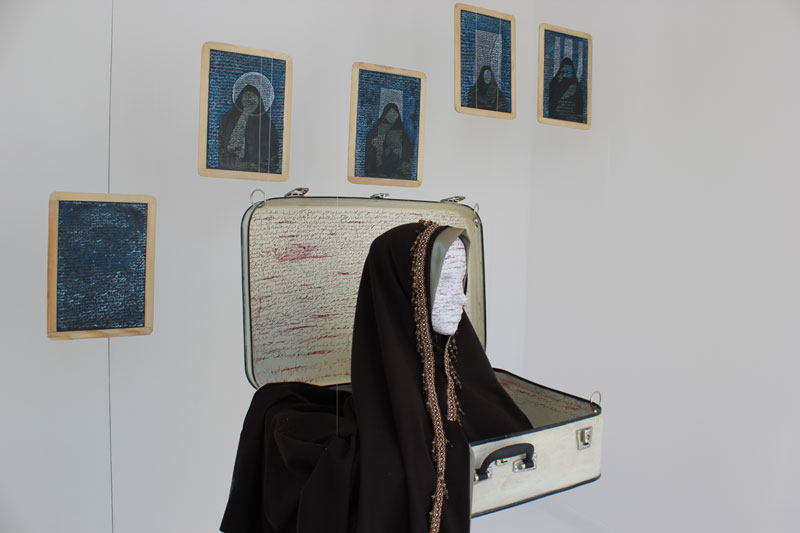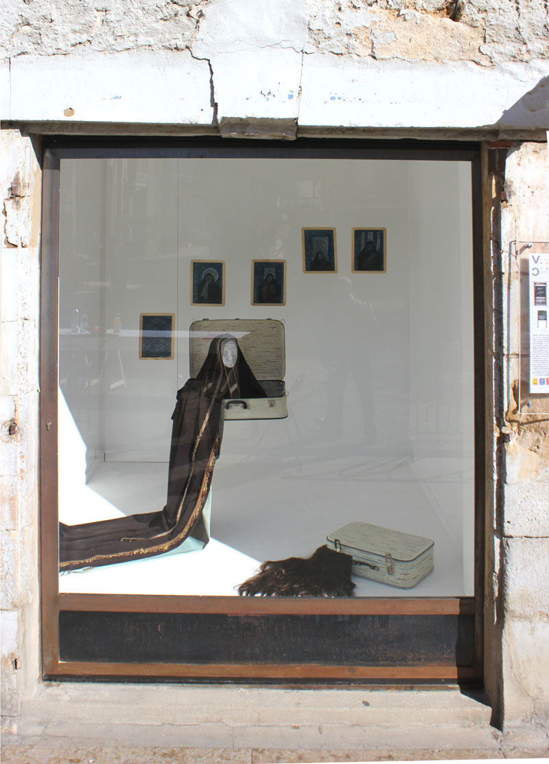 Artiste, femme, enseignante à l’Institut des Beaux Arts de Tunis, citoyenne, Nadia Jelassi s’est trouvée au coeur des problématiques du Printemps de Jasmin. Ses oeuvres récentes, et tout d’abord la série « En rup- ture d’assise » ont traduit en images et en objets poé- tiques cette volonté de changement, qui, d’un constat sen- sible et lucide sur l’état d’une société, amène à décider de retirer l’assise des pouvoirs en place, jusqu’à leur chute. Aujourd’hui, confrontée à une recomposition politique, à des jeux de forces violents, elle met en œuvre, et en jeu, sa liberté, ainsi avec l’installation « Celui qui n’a pas… », présentée en juin à Tunis lors de l’exposition collective «Le Printemps des Arts». Miroir de la condition féminine dans les sociétés arabes et au delà, cette œuvre fut prétexte à une très violente mise en cause intégriste, à une manipulation politique jusqu’à l’émeute, et une mise en accusation des ar- tistes en un remarquable renversement des responsabilités. « La foi pour s’incarner, a inventé ses espaces et ses rituels. Elle fidélise en disciplinant, elle agrège en uniformisant. (…) A contre-courant, l’art pour déprogrammer les corps et les esprits, invente ses espaces et ses discours. Naguère les fidèles gravitaient autour des foyers du Beau, de l’Idéal et d’autres concepts majuscules. L’irruption de la moder- nité « chaotise » ses repères fixes : l’ère est au soupçon. Le hasard, l’éphémère, le fragile, le fragmentaire, le re- but, l’objet ordinaire, le produit consommable etc. L’in- ventaire des matériaux et des notions qui investissent le champ de l’art contemporain s’annonce sans clô- ture.(…)» Imed Jemaieil, in catalogue de l’exposi- tion «En rupture d’assise» Kanvas Art WGallery, 2010. Nadia Jelassi assume aujourd’hui ce combat majeur, dans les lieux d’exposition comme devant les tribunaux, par son œuvre, pensée qui prend forme, fait image – force de l’art – et atteint soudainement, et pacifiquement, de son message, sa cible. Réjouit et renforce, bouscule, dérange, dégage. Pour tout cela, la Vitrine Régionale d’Art Contempo- rain se réjouit d’ouvrir son espace à Nadia Jelassi, se réjouit de vous présenter cette œuvre inédite, et par delà, d’apporter son soutien aux artistes tunisiens. La Vitrine Régionale d’Art Contemporain se réjouit de l’avoir accueilli dans son espace, d’avoir présenté cette oeuvre inédite, et par delà, d’apporter son soutien aux artistes tunisiens.