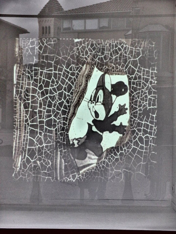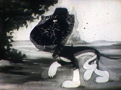 « The Hound and the rabbit est un film d’animation expérimental réalisé à partir du cartoon éponyme de Rudolph Ising réalisé en 1937. Nous nous sommes approprié la forme “cartoon” qui désigne des dessins animés d’origine américaine apparus au début du 20ème siècle. Ces cartoons étaient réalisés dans des studios de production financés par les puissants syndicats de la presse de l’époque. Malgré la multitude de dessinateurs qui les réalisaient n’apparaissent au générique que les noms du réalisateur principal et de la production. En intervenant directement à l’encre de chine sur la copie en 16mm du cartoon, nous avons tenté une appropriation des multiples dessins qui composent chaque photogramme du film et nous nous sommes demandé quelle était la place de l’auteur dans cette pratique réalisée plusieurs mains. Le compositeur Pierre Yves Macé s’est approprié la bande son originale qu’il a travaillé en rythmes, boucles et textures pour obtenir une nouvelle bande son proche de notre intervention graphique. »