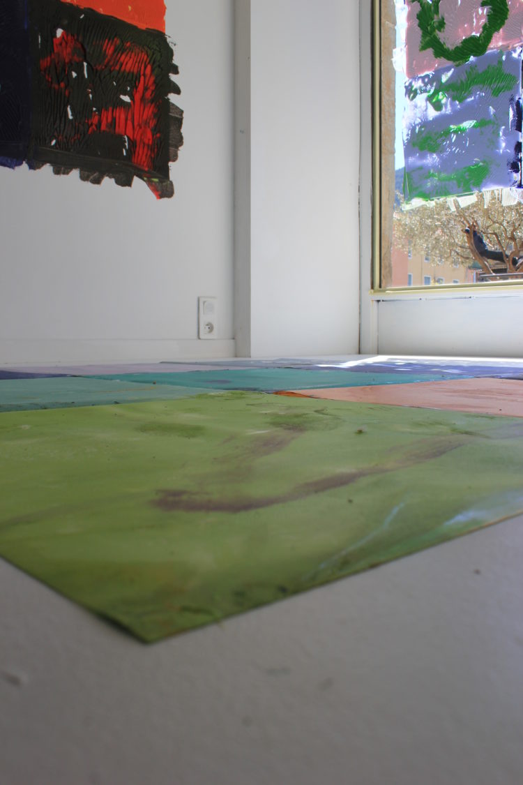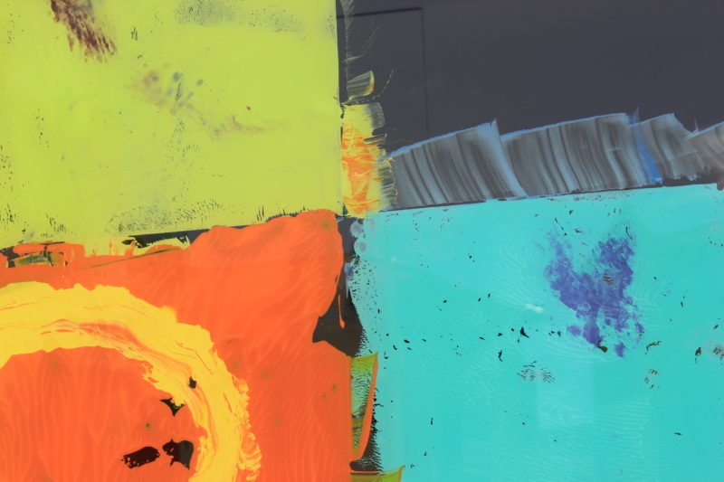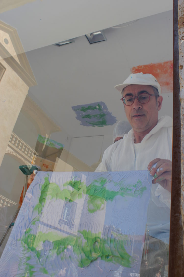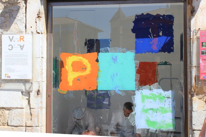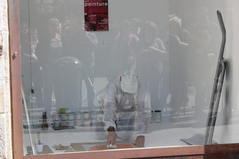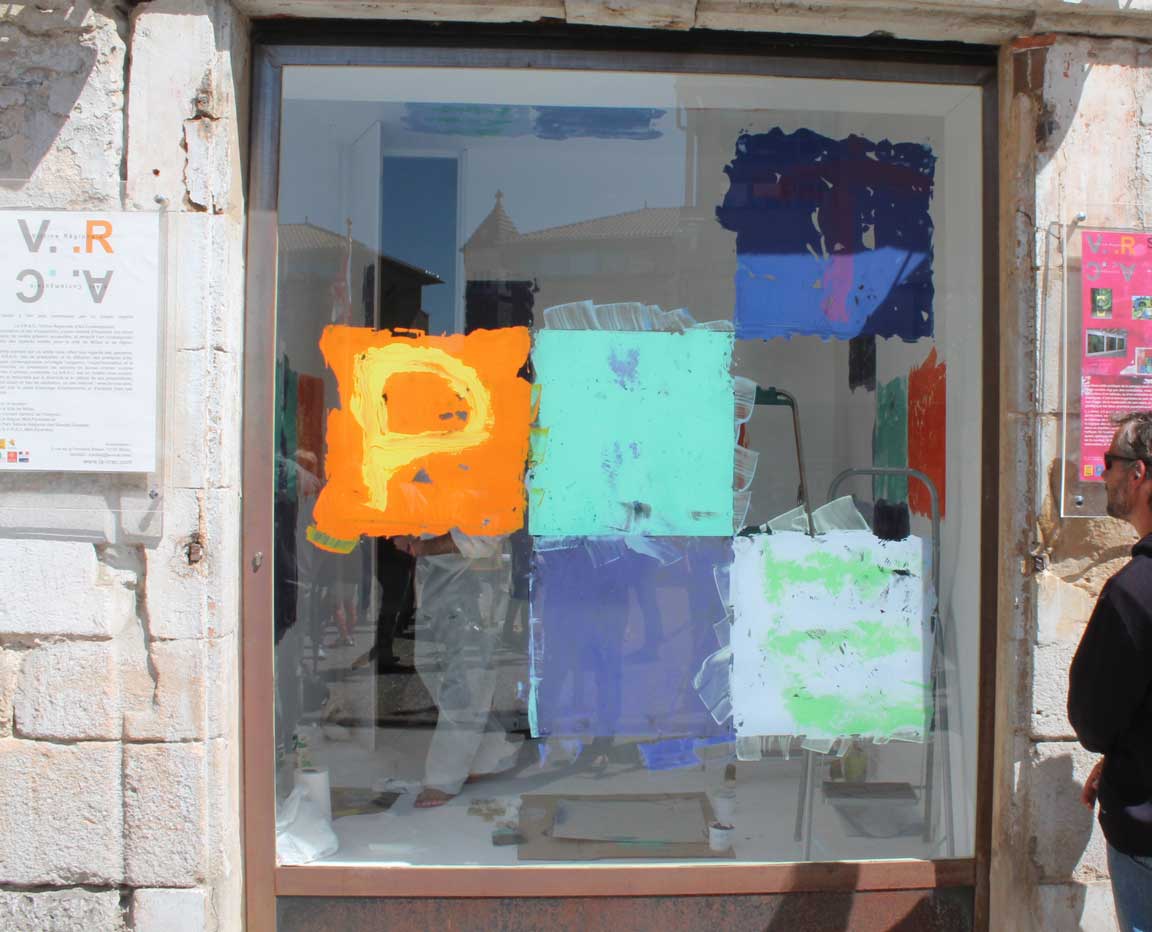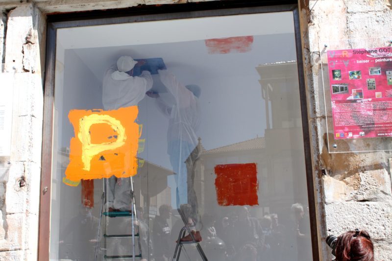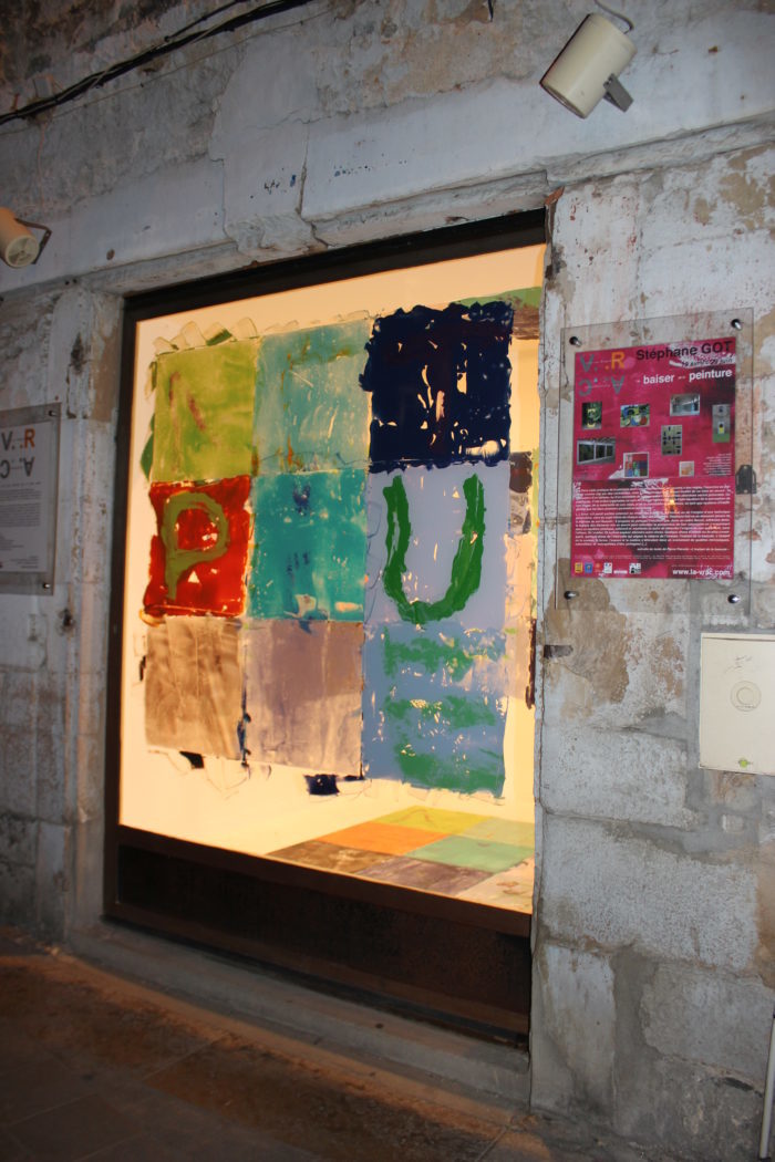 Co-créateur de la V.R.A.C., Stéphane Got, millavois – a proposé une oeuvre inédite- oeuvre in-situ -« Le baiser de la peinture » réalisée lors d’une performance, le temps du vernissage. L’oeuvre conçue par Stéphane Got pour la V.R.A.C. est en lien étroit avec son travail récent de peinture, la série des « Taquins », où le mot « peinture » devient le motif de ses compositions. Peintures réalisées à partir d’hypothèses / formules, pour lesquelles un programme informatique permet la mise en place de combinaisons, proposant ainsi des possibilités infinies de composition….